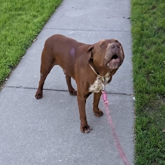 That whole experience was a precursor to another, life changing happenstance. In the first week of June, just after our house went on the market, there was a knock on the door at 7:00 am on a Sunday morning. It was a young woman with a pit bull, the same breed and white/blue coloration as Essie. She explained that she’d been driving to work and saw this dog — no collar, no leash — walking around in the street in front of our house. I agreed to take him in for the day while she was at work. She came back and decided to foster him. She named him “Diesel.”